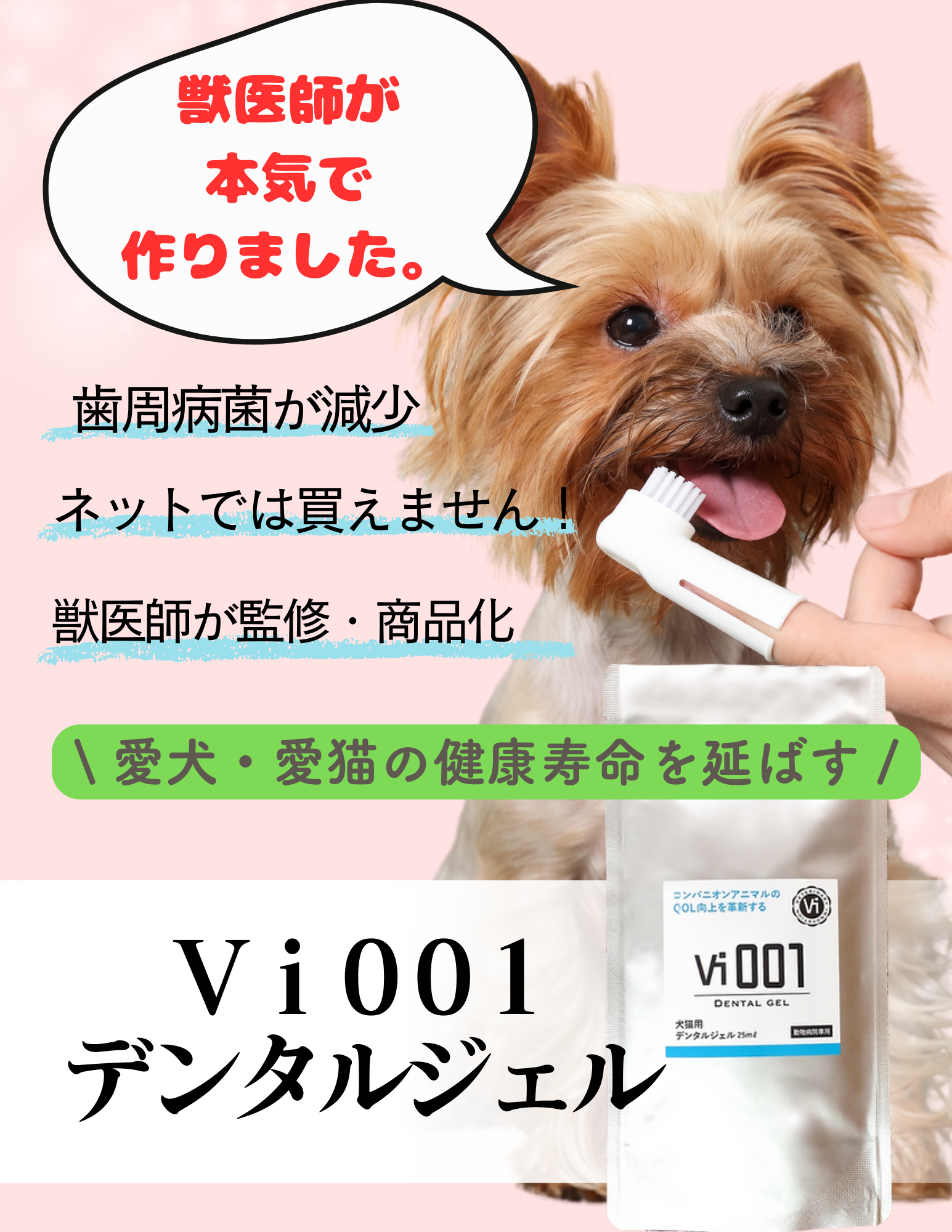 「10年後には、世界からペットの歯周病をなくす」 ことを目指し、獣医師監修のもと製作されたデンタルジェルです。